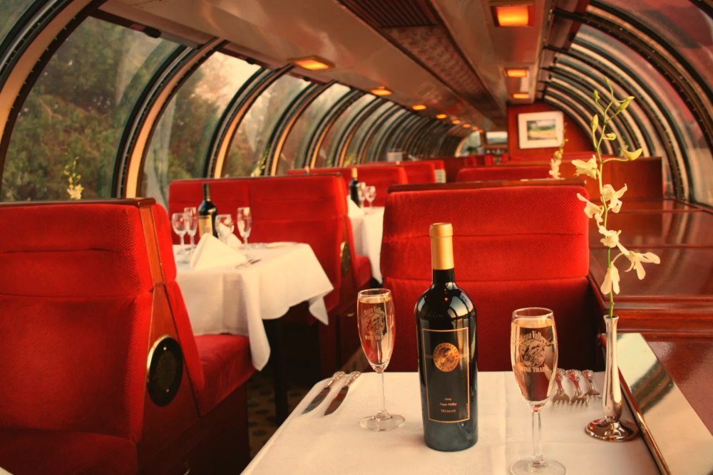 В Португалии вы сможете прокатиться на ретро-поезде, который когда-то возил королей, президентов, папу римского, Елизавету II и других знатных особ. Сегодня, на радость простым пассажирам, он курсирует по Долине Дору, и обслуживает две версии сезонных туров: «Весна» и «Урожай». Во время 9-часовой поездки пассажиры дегустируют национальные португальские блюда от команды мишленовских шеф-поваров. Каждая подача блюд сопровождается лучшими местными винами, начиная от десертных из долины Дору, заканчивая игристыми и благородными красными из Дао и других регионов. Конечная станция маршрута — винодельня Кинта ду Везуаио. Здесь проводится экскурсия и дегустация коллекционных портвейнов. На обратном пути пассажиры слушают живую музыку и пьют чай с десертами.
