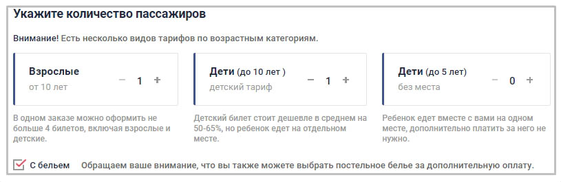 Дети до 5 лет едут бесплатно, без места, а маленькие граждане с 5 до 10 лет — по специальному тарифу (со скидкой в 50 — 65%).