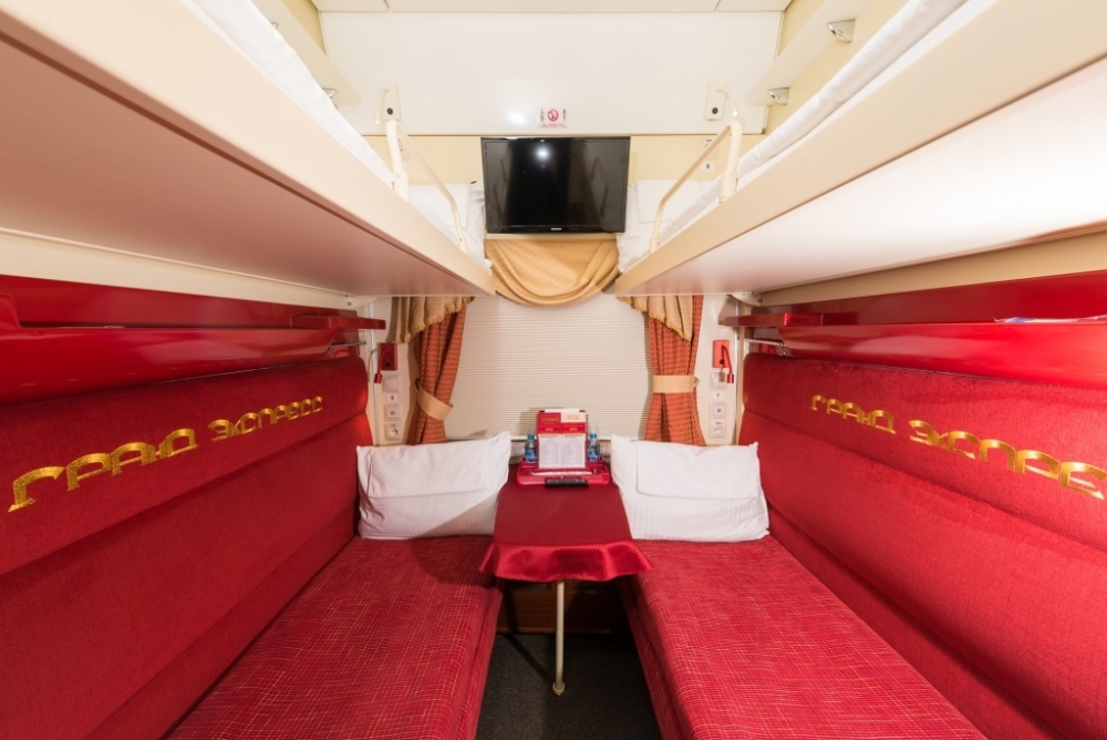 Купе «Гранд» и «Гранд Сингл» на 50% больше, чем обычные купе. Здесь есть санузел с душем и унитазом, кондиционер, сейф. В стоимость проездного билета входят: горячий завтрак, фруктовая тарелка, шоколад, газировка, фреш, гигиенический набор, бельё постельное, тапочки и халат.«Гранд де Люкс» и «Гранд Империал» в 2 раза просторнее обычных купе. К перечисленным выше прелестям цивилизации здесь добавляют тёплый пол, кожаную обивку диванов, горячий ужин, VIP-бар и дорожный набор для обуви.