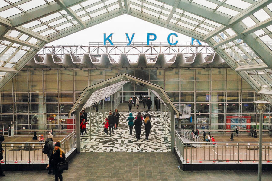 Курский вокзал был открыт в 1886 году. Его построили в пределах Садового кольца, чтобы заменить Нижегородский, который не справлялся с возросшим пассажиропотоком. Оба вокзала были возведены для обслуживания нижегородского, курского и муромского направления.Реконструкция вокзала была проведена в 1986-1972 годах под руководством Волошинова. Впоследствии он признался, что молодые архитекторы, вдохновлялись вокзалом Термини в Риме. Новое здание получило 200-метровый остеклённый фасад и оригинальную складчатую крышу.