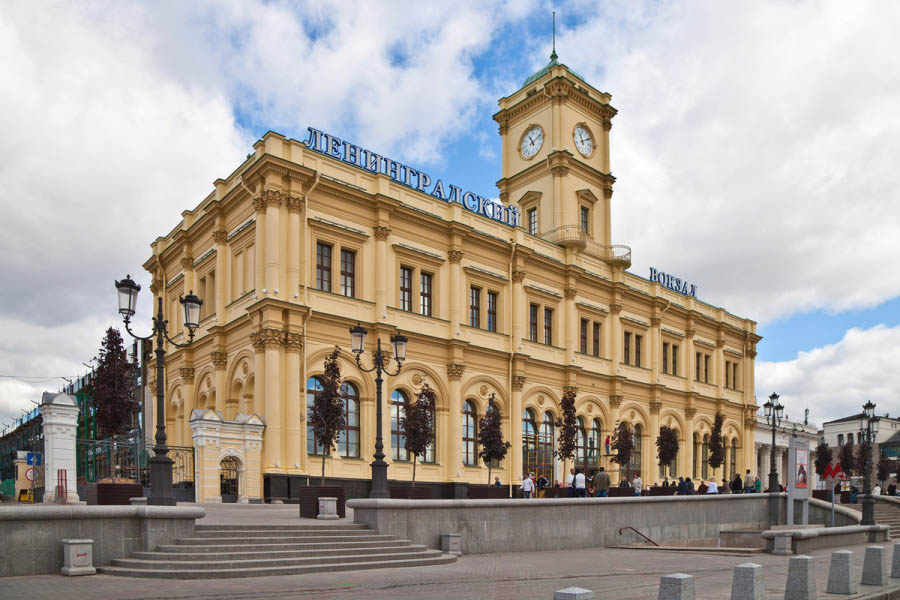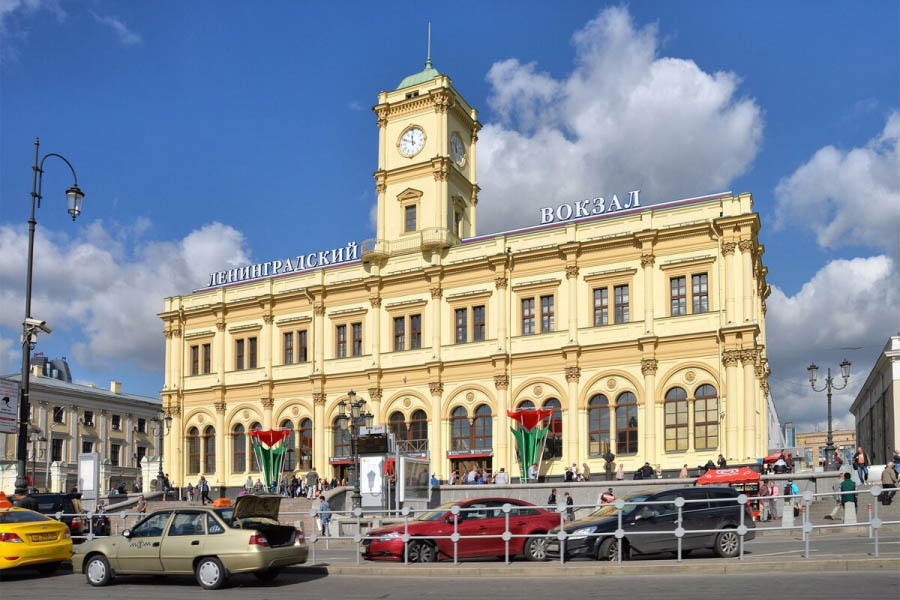 Ленинградский вокзал — одна из железнодорожных станций, расположенных на Комсомольской площади, именуемой в народе «площадью трёх вокзалов». Пассажирский терминал появился в Москве самым первым. Здание было построено по проекту Константина Тона и является объектом культурного наследия народов России.Возведение Ленинградского вокзала началось в 1844 году, после начала работ по строительству железной дороги между Москвой и Санкт-Петербургом. Помещение было украшено дубовым паркетом, шведскими мраморными печами, а туалеты оснащены каминами. На втором этаже главного корпуса вокзала проживали служащие. Планировка помещения подчинялась классовой системе разделения пассажиров. Часть левой платформы обслуживала царскую семью.