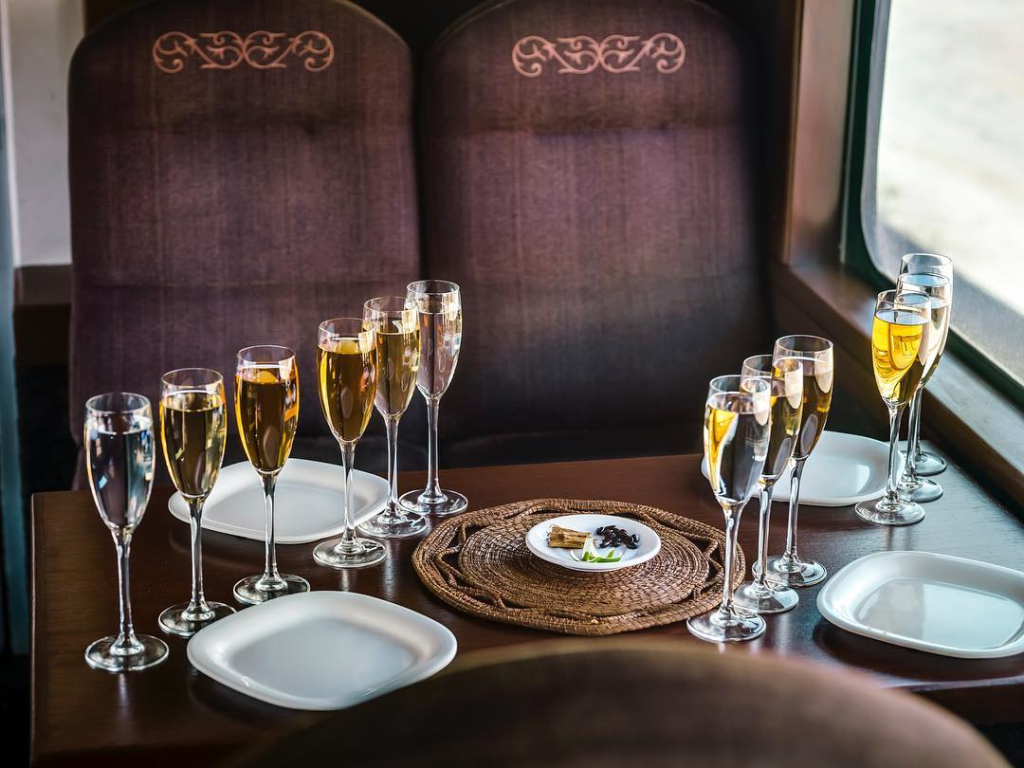 Интерьер «Хосе Куэрво Экспресс» можно оценить на твёрдую пятёрку. Это, конечно, не индийский дворец на колёсах «Махараджа Экспресс», но очень достойный поезд. В оформлении его интерьеров преобладают тёплые шоколадные оттенки с элементами позолоты. Кресла мягкие, с приятной на ощупь текстильной обивкой. Свет не яркий, рассеянный, хорошо дополняет естественное освещение вагона. Есть багажные полки.