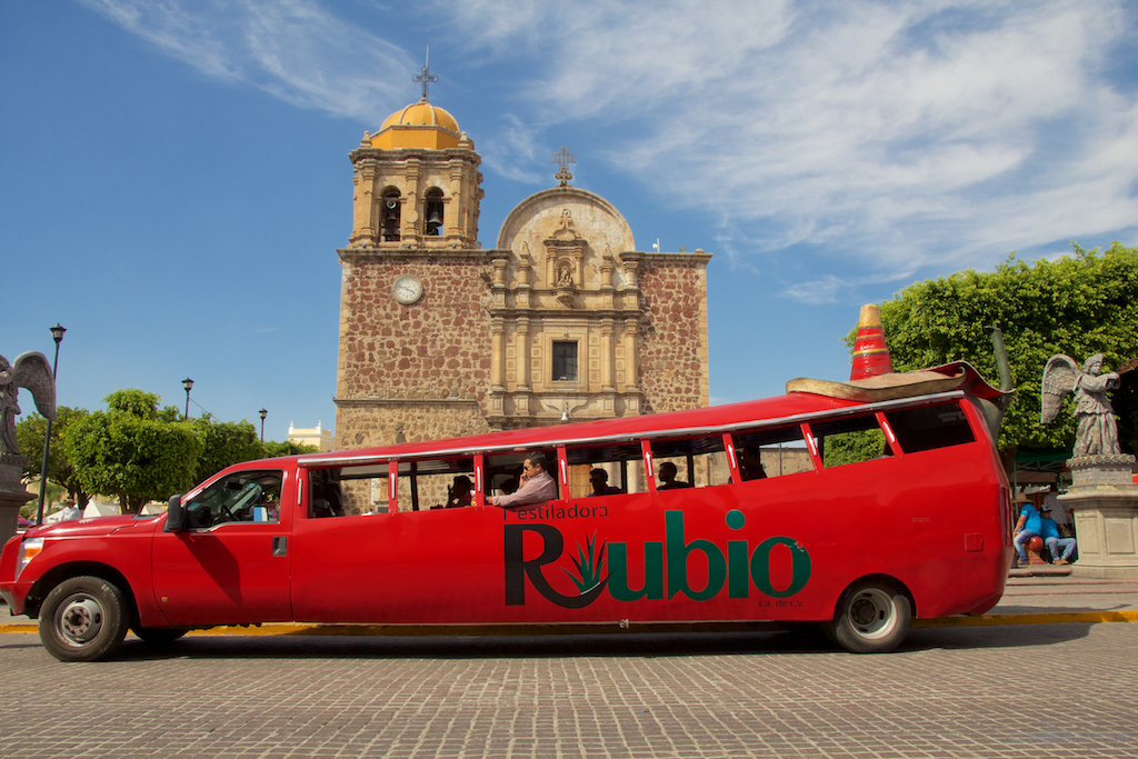 Время в поезде пролетело незаметно и вскоре мы прибыли в Текилу. Здесь нас встретили участники зажигательного «Мексиканского шоу» — мужчины в сомбреро и женщины в ярких пышных юбках, которые исполнили для нас несколько танцевальных номеров. После шоу мы отправились на старинную винокурню La Rojeña, познакомились с технологией производства текилы, после чего побывали на плантациях агавы, погуляли по городу и пообедали в кафе (за свой счёт).