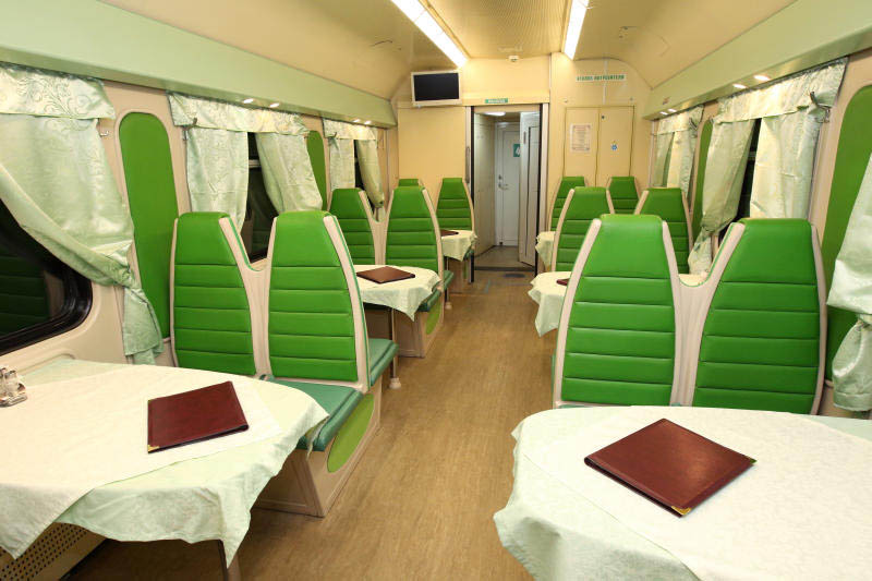 В купейных вагонах класса «эконом» пассажиры могут выбрать питание из предложенного меню. Им предоставляется набор одноразовых столовых приборов, специи, салфетки и зубочистка.