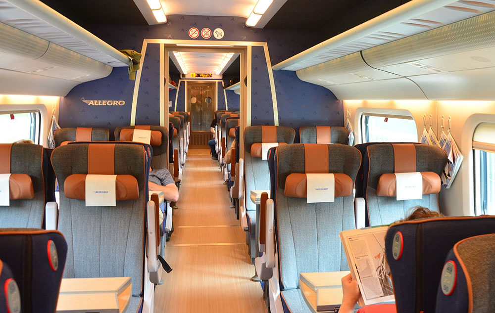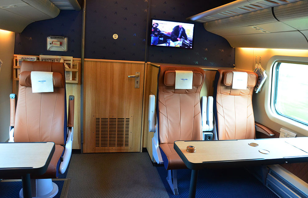 Самые удобные места для путешествия поездом «Аллегро» расположены в вагоне № 1, где предоставляется обслуживание Первого класса. В этом вагоне больше свободного места за счёт того, что кресла расположены в конфигурации 1×2. Кроме того большие кожаные сиденья, мультимедийная радио-система и лёгкие закуски сделают поездку наиболее комфортной.