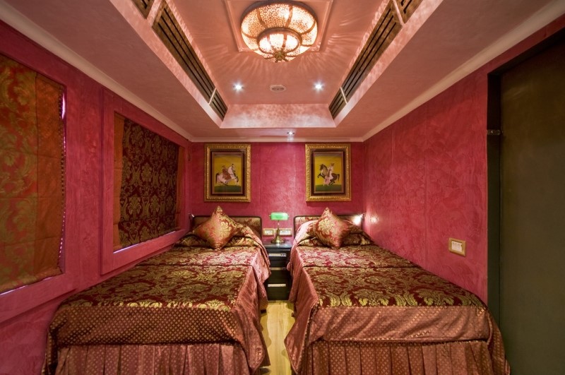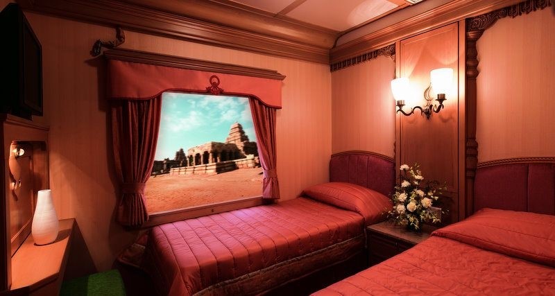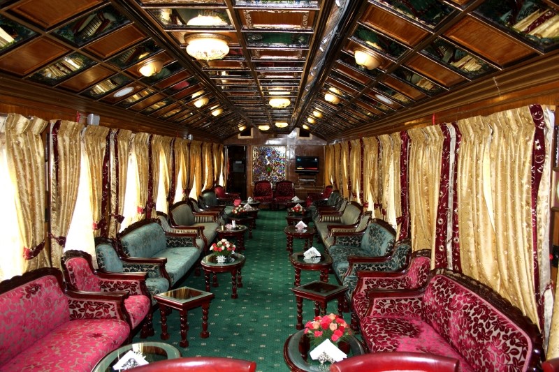 Цена билета 5730 $Название этого роскошного туристического поезда переводится как «Золотая колесница». Фирменные цвета поезда – фиолетовый и золотой. Состав состоит из 11 вагонов, в которых есть 44 купе, два ресторана, лаундж-бар, конференц-зал, тренажёрный зал и спа-центр. Маршрут поезда пролегает мимо важнейших достопримечательностей Индии.