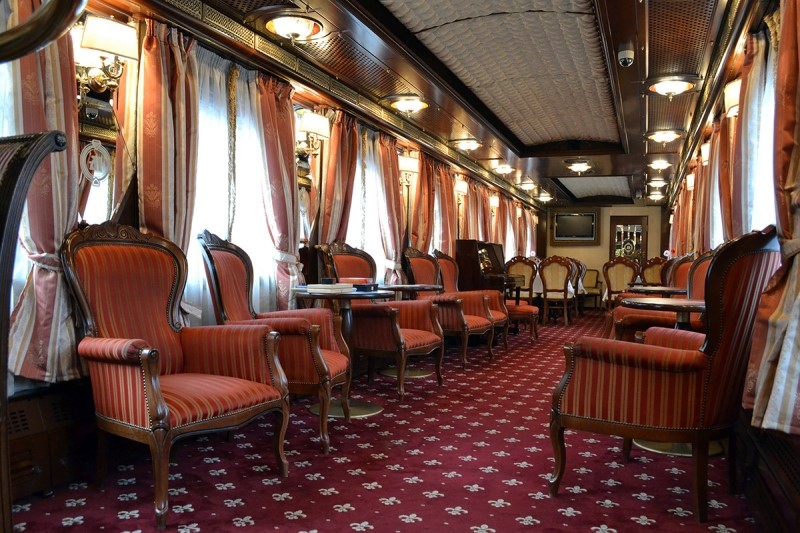 Цена билета от 5274 $Поезд «Императорская Россия» известен во всём мире. Он совершает поездки всего трижды в год по разным маршрутам. Внутри воссоздана обстановка поезда, на котором некогда путешествовали члены царской семьи. В его состав входят ресторан, бар и салон с пианино.