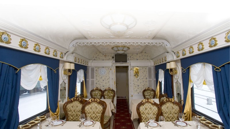 Цена билета от 6840 $Этот поезд воплотил в себе всю роскошь и великолепие королевского дворца. Здесь представлены купе классов «Полулюкс», «Люкс» и президентские апартаменты. За каждым люксовым купе закреплен камердинер, который обеспечивает внимательное и быстрое обслуживание гостей. В стоимость проезда входят услуги гида-переводчика и аренда презентабельного автомобиля.