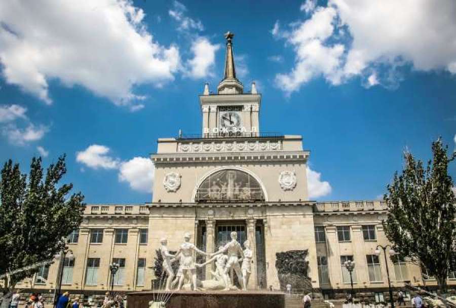 Первый деревянный вокзал построили в 1862 году. Современное здание открыли в 50-годах. Объект типичен для архитектуры эпохи Сталина: трёхэтажное здание с башней снаружи отделано гранитом, внутри стены облицованы мрамором. В декабре 2013 года после теракта здание было закрыто. Вокзал после восстановительных работ открыли в 2014 году. Является объектом культурного наследия России регионального значения.