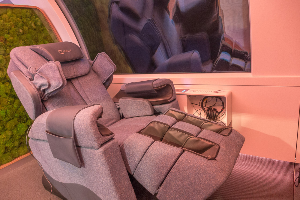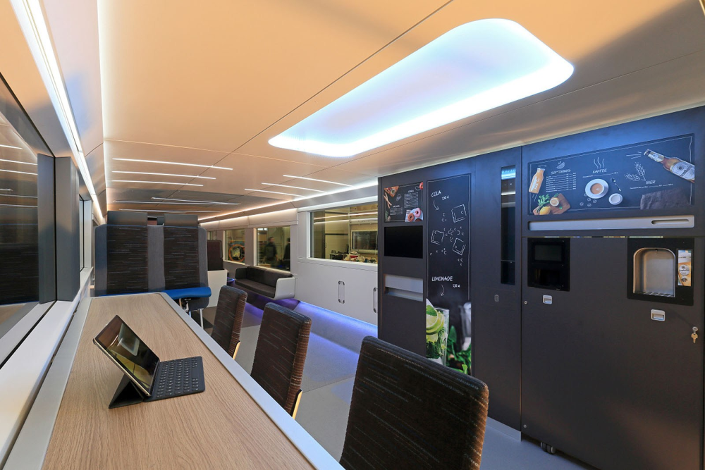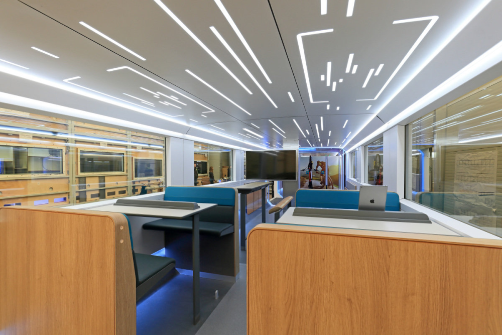 Купе для ведения деловых переговоров имеют хорошую звукоизоляцию. Внутри установлен большой стол со встроенными планшетами для презентаций. Наличие такого купе позволит бизнесмены каждую минуту в пути проводить максимально эффективно.