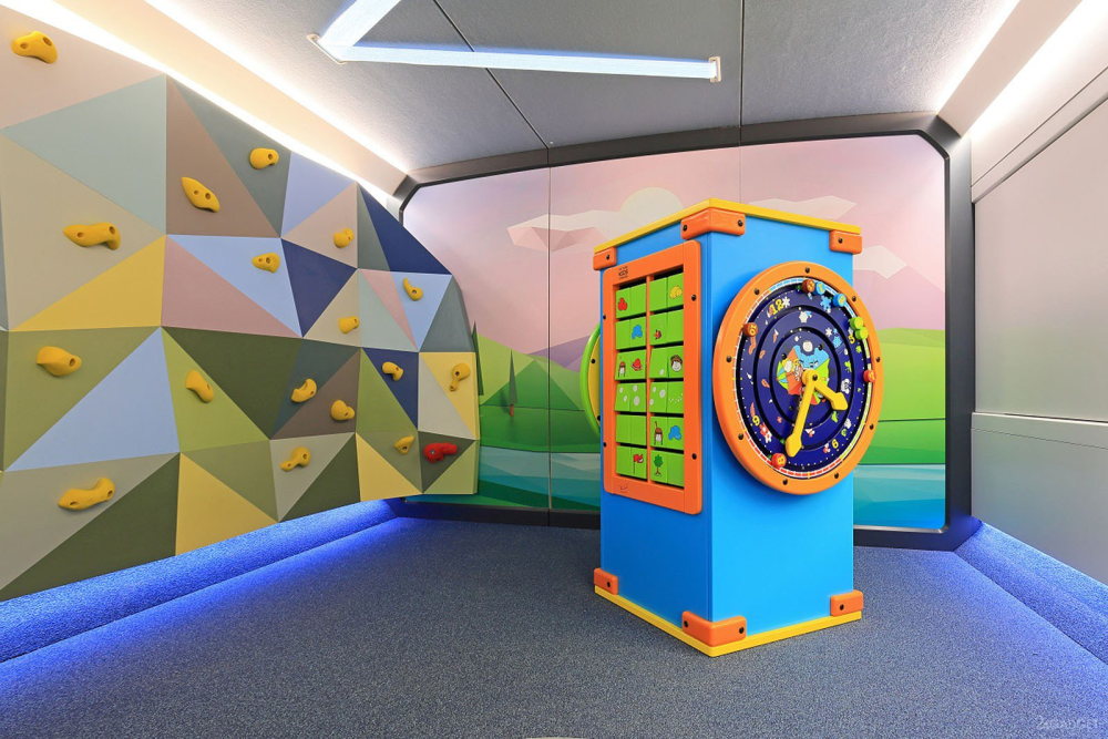 Для пассажиров с детьми в Idea Train предусмотрена яркая игровая зона. Здесь собраны развлечения для юных пассажиров дошкольного и младшего школьного возраста. Наличие игровой зоны сделает путешествие максимально комфортным как для малышей, так и для их родителей.