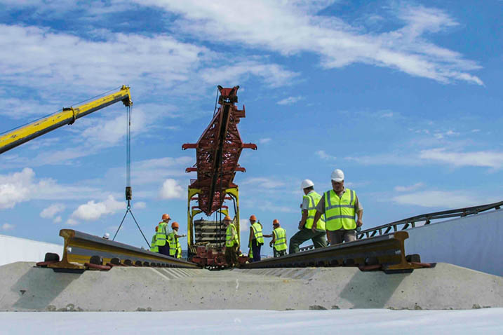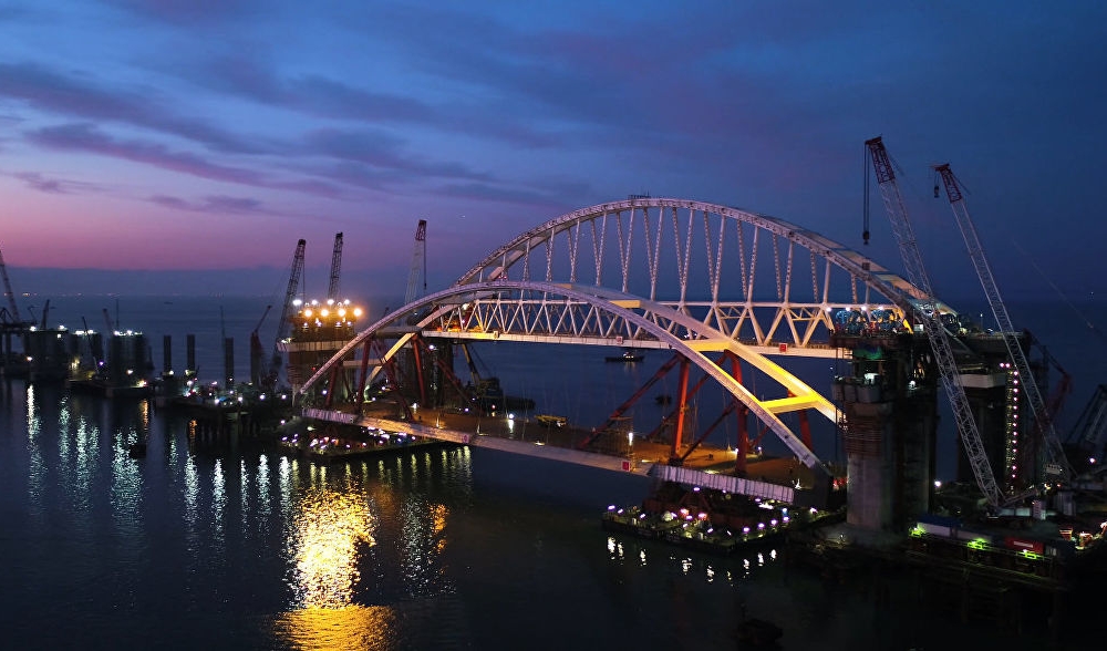 Сегодня над сооружением 19-километрового отрезка железной дороги между «большой землёй» и Крымом трудятся почти 7 тысяч рабочих и инженеров, а также несколько сотен единиц строительной техники. Монтаж пролётов железнодорожной части моста завершён более чем на 90%, на готовые участки уже уложено более 30% от совокупной протяжённости железнодорожного полотна.