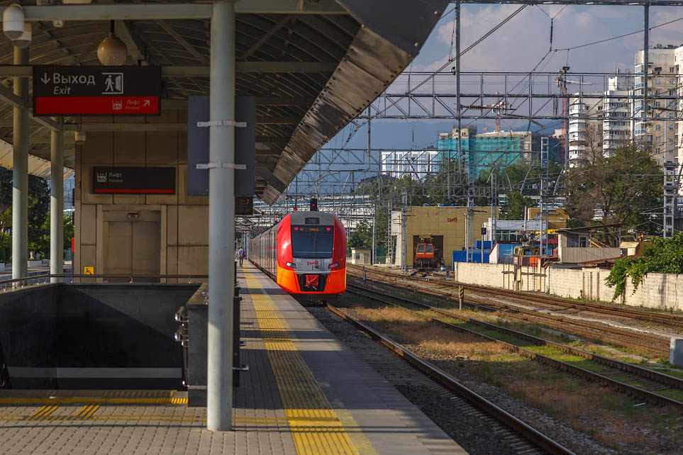 С сочинского вокзала регулярно ходят электропоезда «Ласточка» из Краснодара и Майкопа в Адлер, Роза Хутор и Имеретинский курорт.