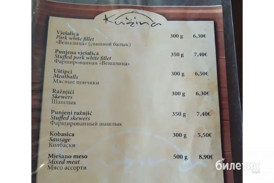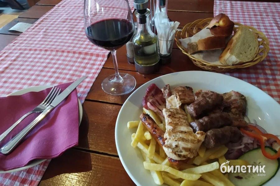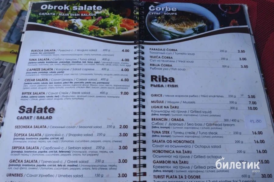С террасы кафе открывается потрясающий вид на Бар. Город тонет в дымке и лучах солнца, в межгорье видны красные крыши монастыря Рибняк и заковыристые изгибы дороги к нему, крепость Чёрный камень. С другой стороны вздымаются в небо вершины хребта Широка Стра’на. Об этом месте туристы узнают лишь по подсказкам местных жителей. А приехать сюда стоит, ради таких чудесных фото и, конечно же, впечатлений, которые невозможно передать ни словами, ни снимком.Советы туристам. Как за границей поесть вкусно и недорого
