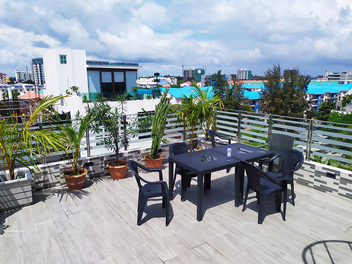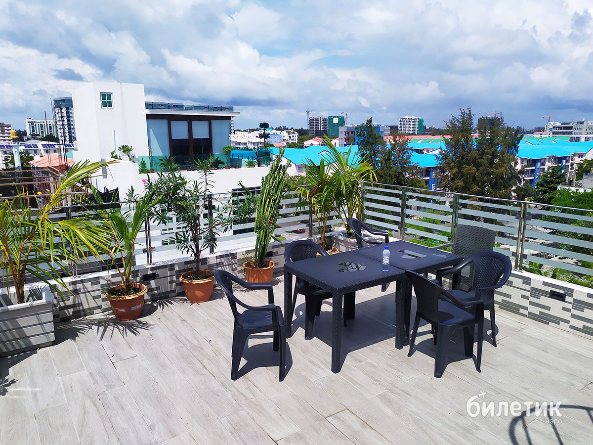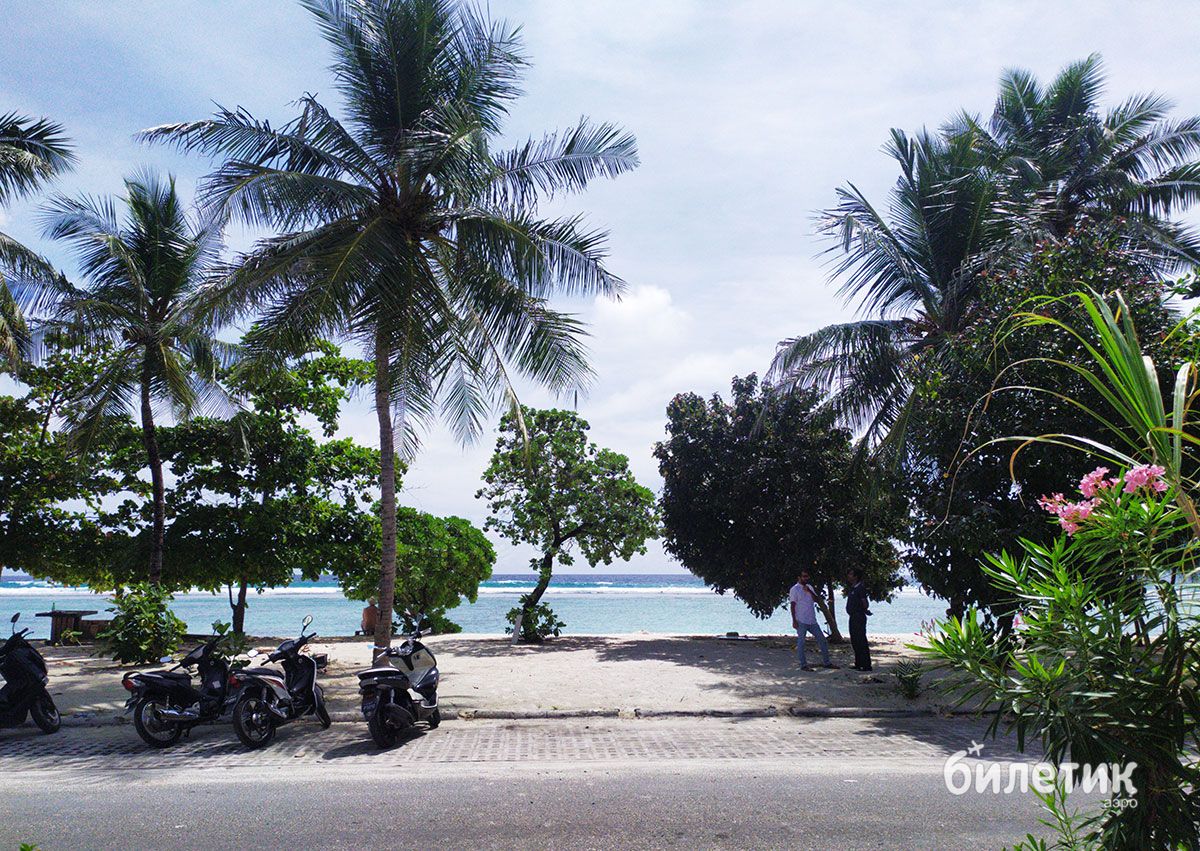 Поэтому мы посмотрели отели, которые есть на Хулхумале, выбрали тот, который нам понравился по фотографиям, и написали хозяину. В первом же письме я рассказал о проекте «Профессиональный путешественник» и что об отеле я обязательно напишу — и нам выделили улучшенный номер с балконом и видом на море.