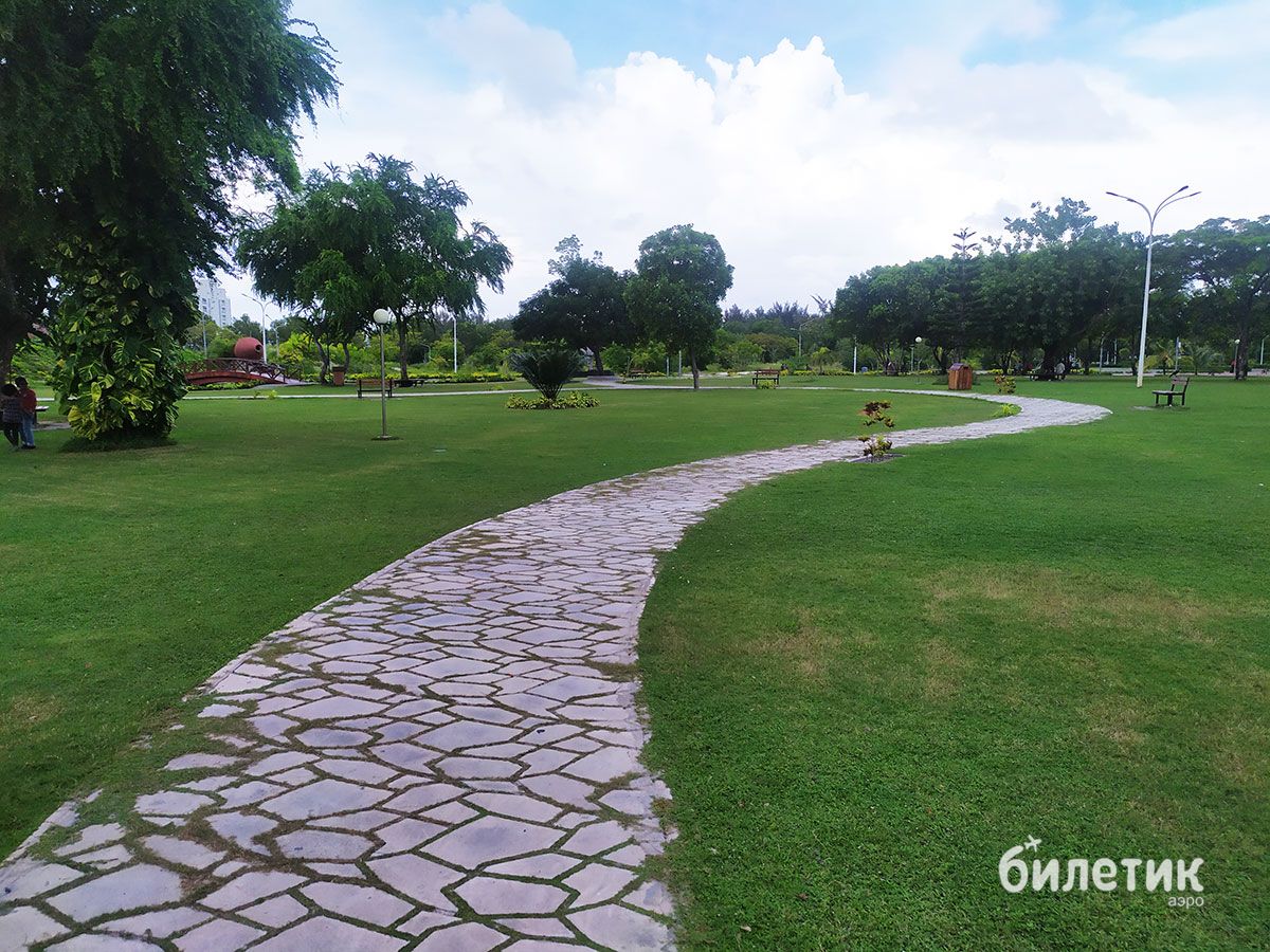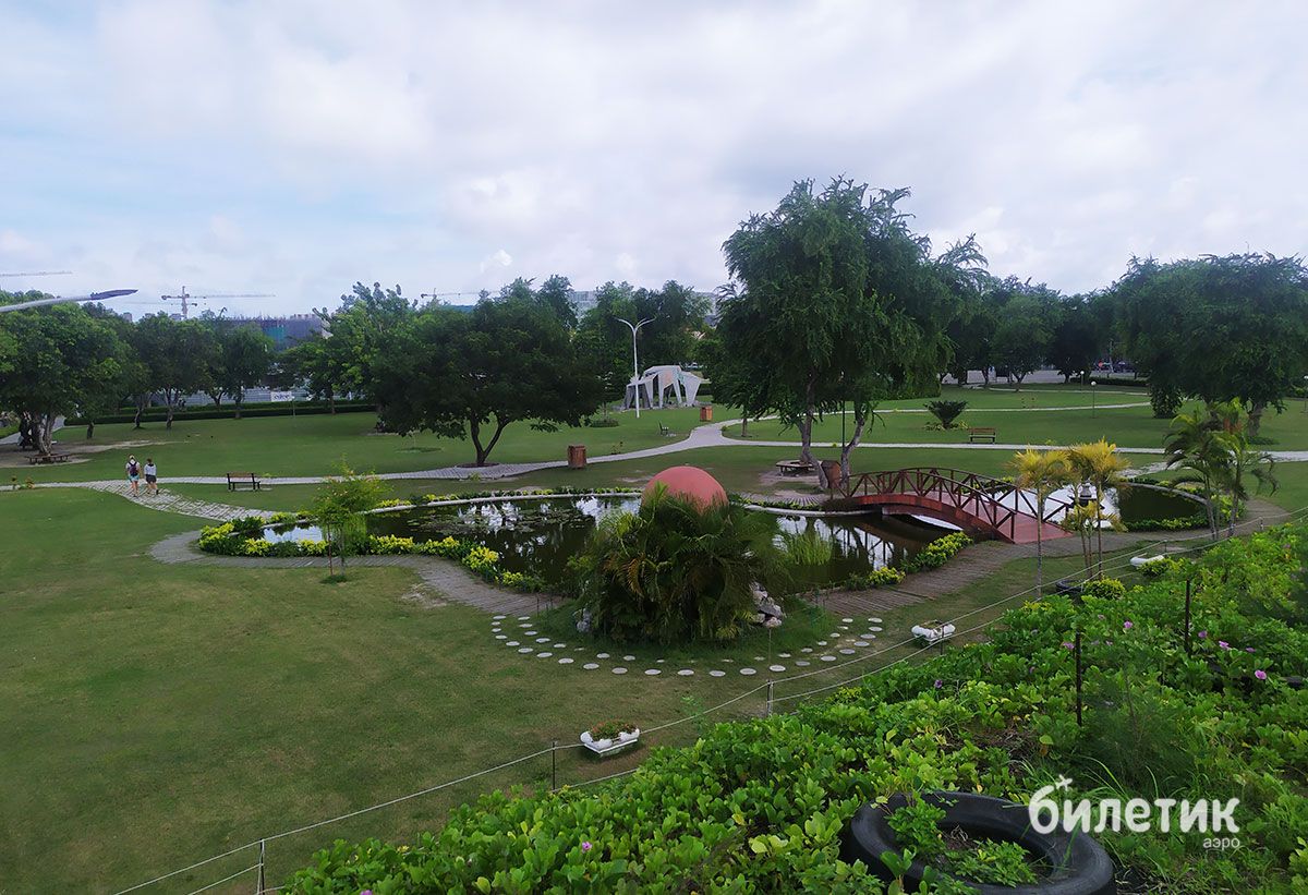 Хулхумале внешне напоминает какой-нибудь провинциальный американский южный городок с зелеными табличками улиц, пальмами на пляже и даже центральный парк там есть — тоже почти как в Нью-Йорке. Он небольшой, но вполне аккуратный и зеленый. Дорожки, скамейки, арт-объекты и небольшой вьюпойнт с кованым фонарем на холме. Ничего примечательного с этого вьюпойнта не видно, но в качестве места для свиданий вполне подойдет. В общем, парк уютный. И для мальдивцев, которые особо никуда со своих островов не выезжали, он, наверное, является символом цивилизации. Но, конечно, это тоже не Нью-Йорк.