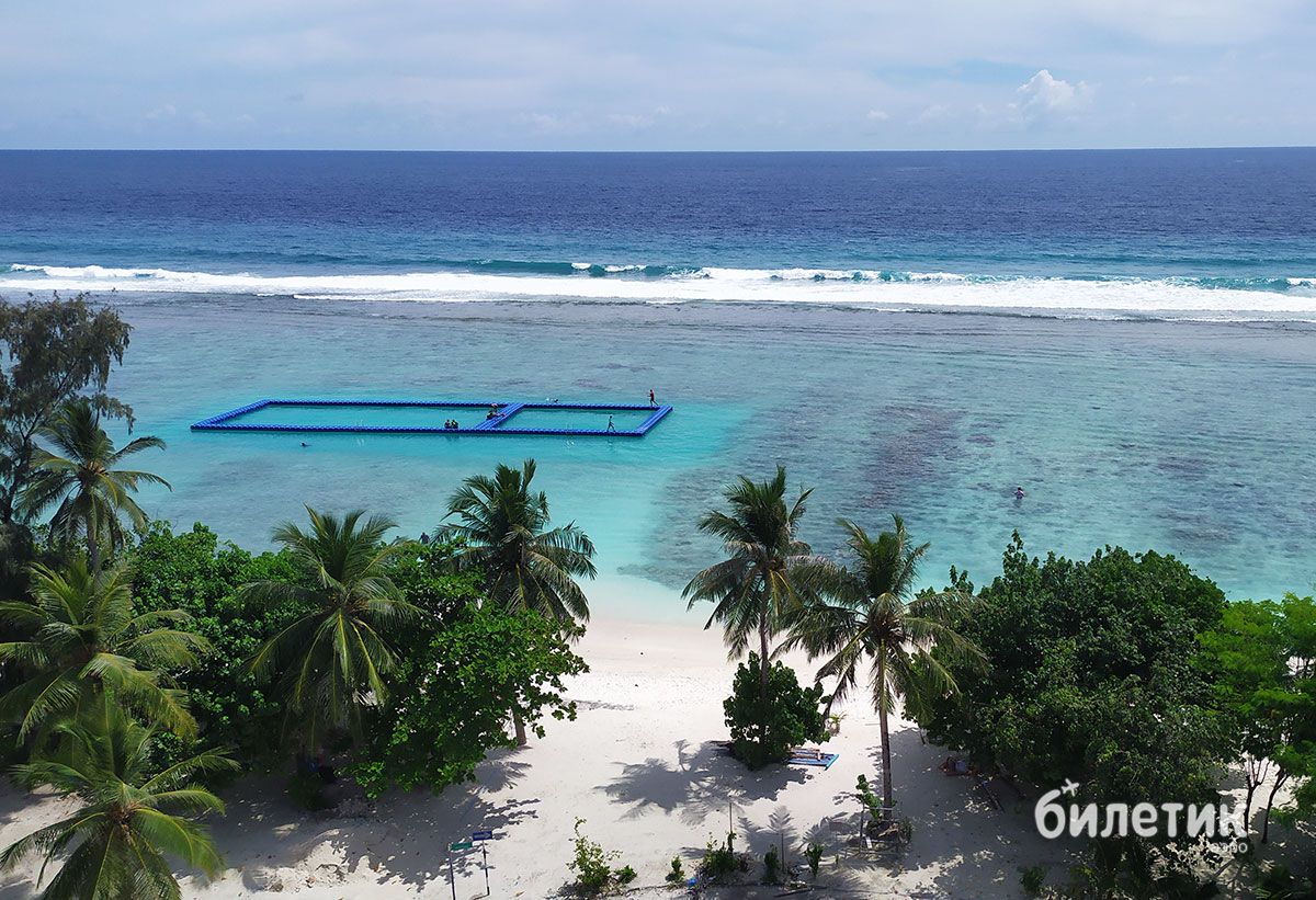 Да, там есть пляж, несколько замусоренный, но со вполне чистой водой. Бикини-бич мы, правда, не нашли, зато прямо напротив нашего Araam Stay был морской бассейн: огороженная пластиковыми понтонами часть моря, с лесенками и очищенным дном — чтобы можно было купаться, не рискуя ободрать ноги о кораллы. Но, конечно, ехать на этот остров ради пляжного отдыха не стоит, это совсем не Мальдивы в привычном понимании.