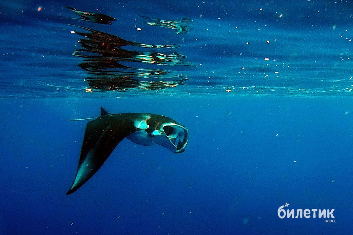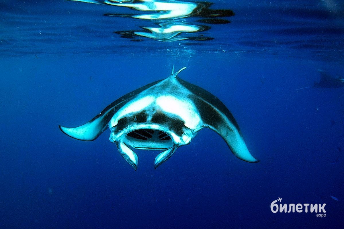 Вот честное слово, плывешь ты такой, весь из себя продвинутый и начитанный, знаешь, что манты питаются планктоном, что они не опасны, и вообще им до тебя дела нет, но тут на тебя из темноты надвигается двухметровая туша — движется прямо навстречу, лоб в лоб. А метров за пять до тебя разевает пасть, и ты понимаешь, что можешь туда весь целиком поместиться, вместе с трубкой, маской и подводной камерой. И вот тогда, невзирая на все знания, умения и нордический характер, сердце все равно екает, а дремучие инстинкты нашептывают, что пора сваливать от греха — и как можно быстрее.