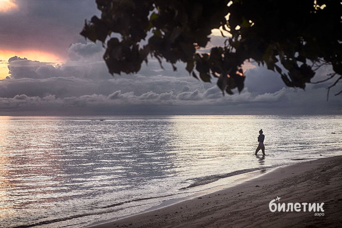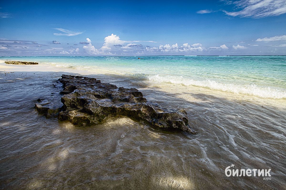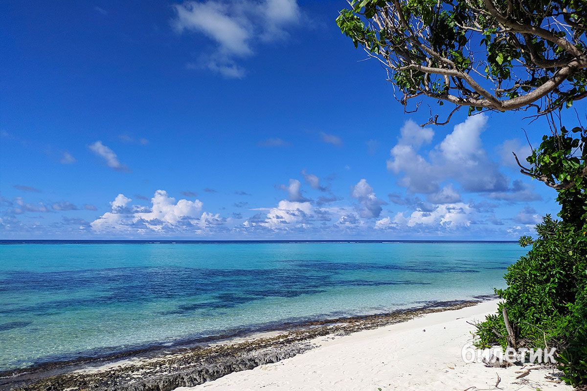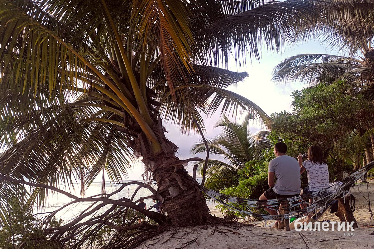 Погода в ноябре — жаркая. Днем температура обычно держалась в районе +30, по ночам прохладнее. Духоты нет — все-таки это крохотный остров, продуваемый всеми ветрами. Если ходить по городку — может быть жарко, а вот на пляже в тени очень комфортно. Вода теплая, +27-28. На острове мальдивском Тодду,