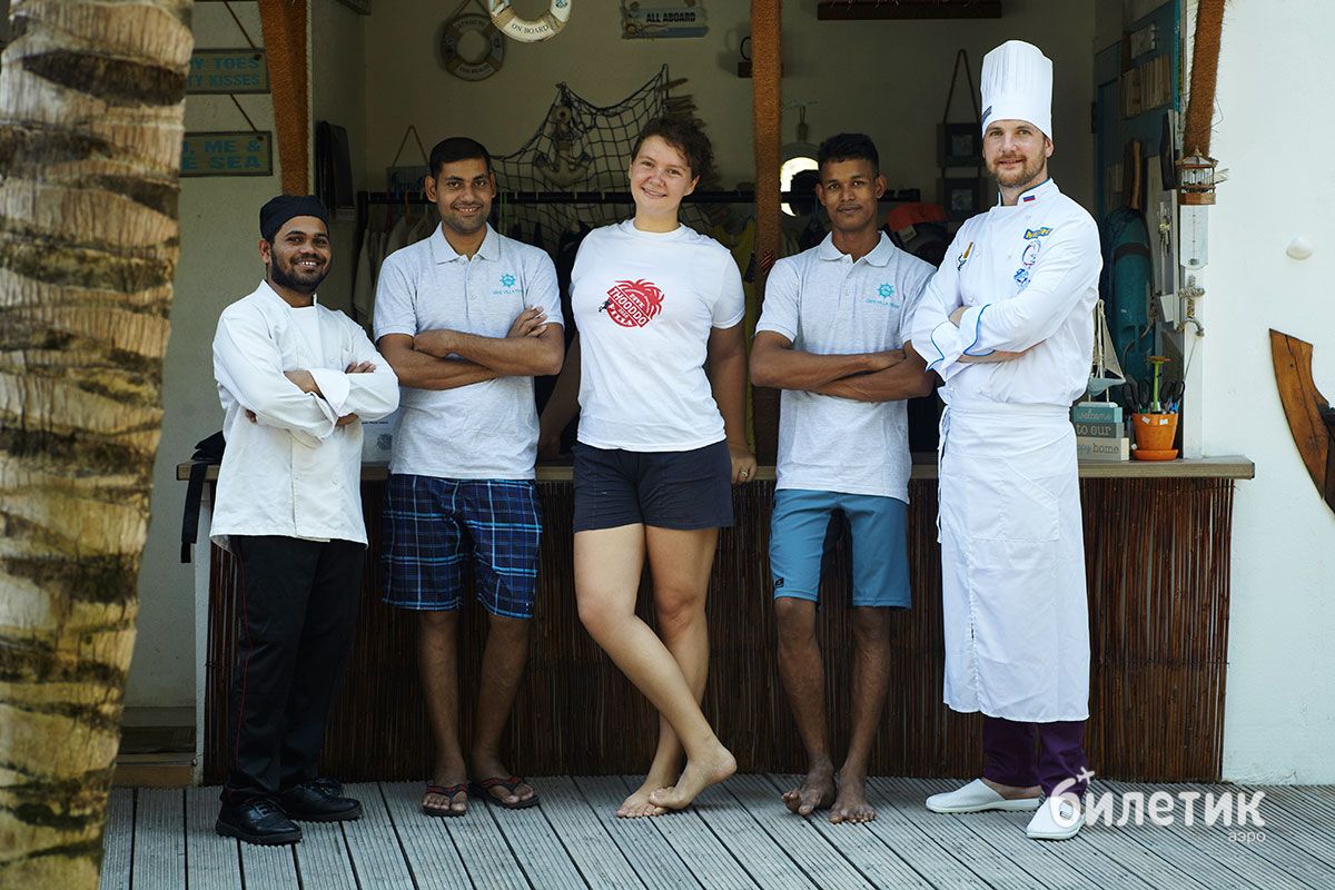 Мы сами жили в гестхаузе, которым владеет на пару с мужем девушка Анна из Прибалтики, администратором у нее работает Ольга из Новосибирска, а шеф-поваром — Руслан, профессионал с 14-летним опытом и кучей наград. Мы заходили в ресторанчик с названием «Seli Poeli», в русский дайв-центр, ездили на острова Расду и Мадивару с группой, которую сопровождал администратор Дмитрий, а на Хулхумале снимали номер в отеле у Олега.