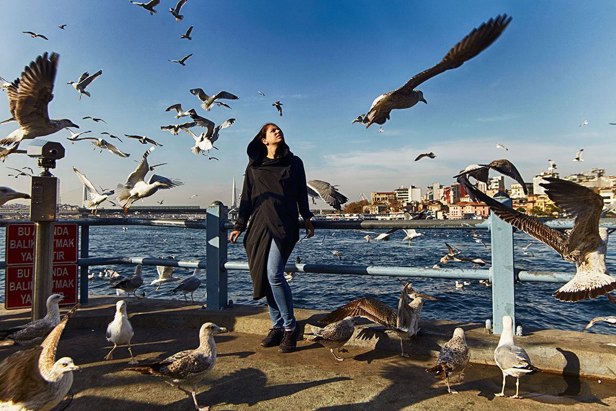 «Я назначу тебе встречу на Галатском мосту, там, где стоят рыбаки, под дождем они ловят кефаль и хамсу, из моря, не из реки. Мы будем вместе смотреть на Босфор, накрытый туманом зимы, на Галатском мосту ты найдешь меня, под зонтом от потоков воды. Ведь зимою в Стамбуле часто дожди, но я тебя буду ждать, на Галатском мосту ты найдешь меня, хотя можешь и опоздать...»