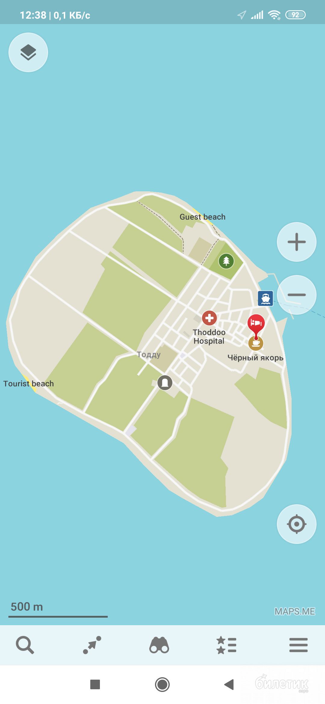 Поскольку прямо перед поездкой у меня сломался старый мобильник — пришлось купить новый и восстанавливать на нем все приложения. Очень полезная программка для путешественников — карта Maps.Me, которая есть и под Андроид, и под iOS. Она работает без интернета — вы просто заранее скачиваете карту той местности, куда собираетесь. Мальдивы, правда, занимают там всего 2Мб, можно было бы скачать прямо на месте.