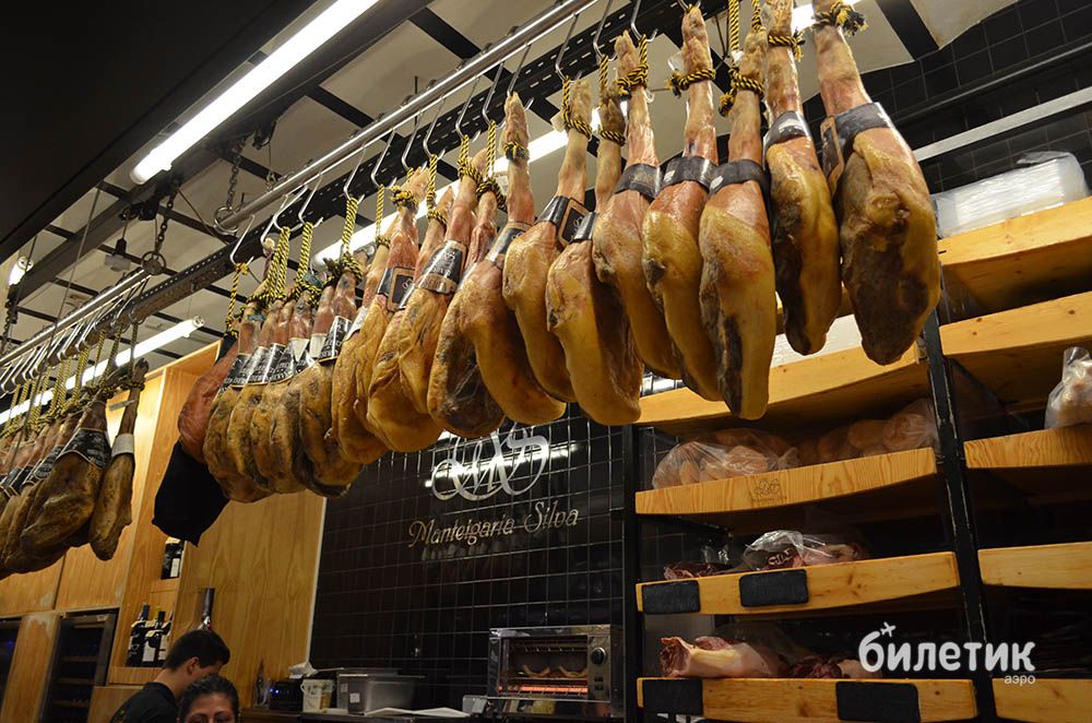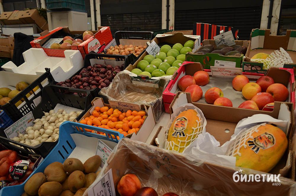 «Не успели» — подумали мы. Как вдруг, на наши глаза попалось информационное табло, на котором было написано, что рынок реставрируется, а значит, это чудо света пытаются сохранить. На время ремонта рынок расположился в здании торгового центра неподалеку. Кончено, с точки зрения архитектуры оценить его было невозможно, зато нам выпал шанс познакомиться с ассортиментом.