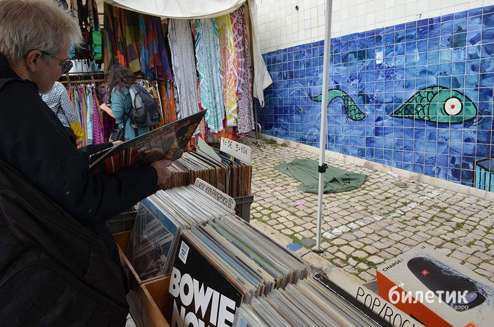 Среди вторичной торговли были большие выкладки с музыкой на самых различных носителях — от CD дисков до виниловых пластинок. Я взяла двойной диск — сборник нежной румбы босанова за 10 евро. Среди пластинок представлено много исполнителей традиционного португальского городского романса — фадо. Хороший подарок коллекционерам. Есть и классика рока, фанка и джаза, по 5 евро за шутку.