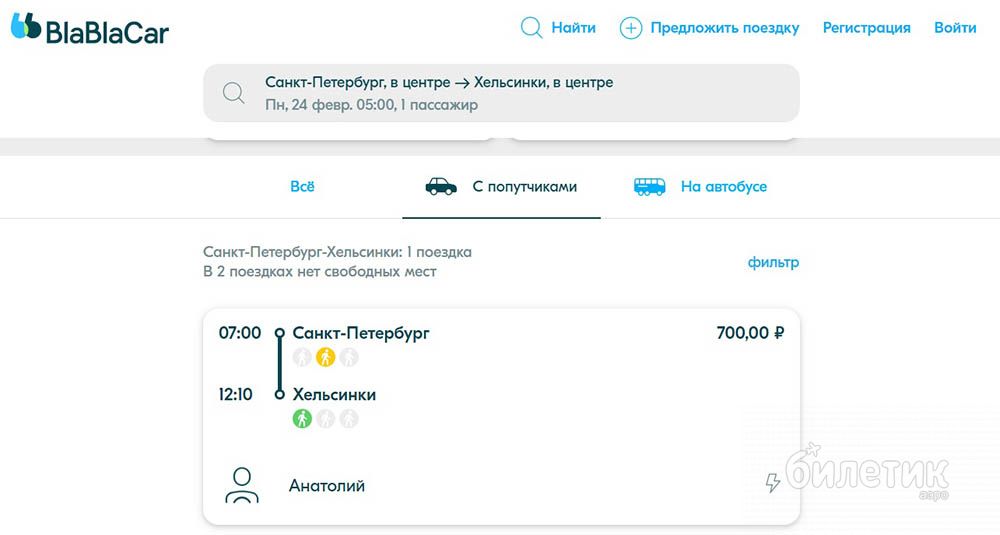 На мой взгляд — это самый удобный вариант проезда. 5 часов езды на машине, в отличие от 6 часов езды на автобусе (без прохождения контроля). Пару часов до границы и три часа по хорошим финским дорогам до аэропорта. Автомобилем вы можете добраться, присоединившись попутчиком. Расценки зависят от марки автомобиля и количества пассажиров. Быстро, комфортно и, пожалуй, это самый дешевый вариант из всех.