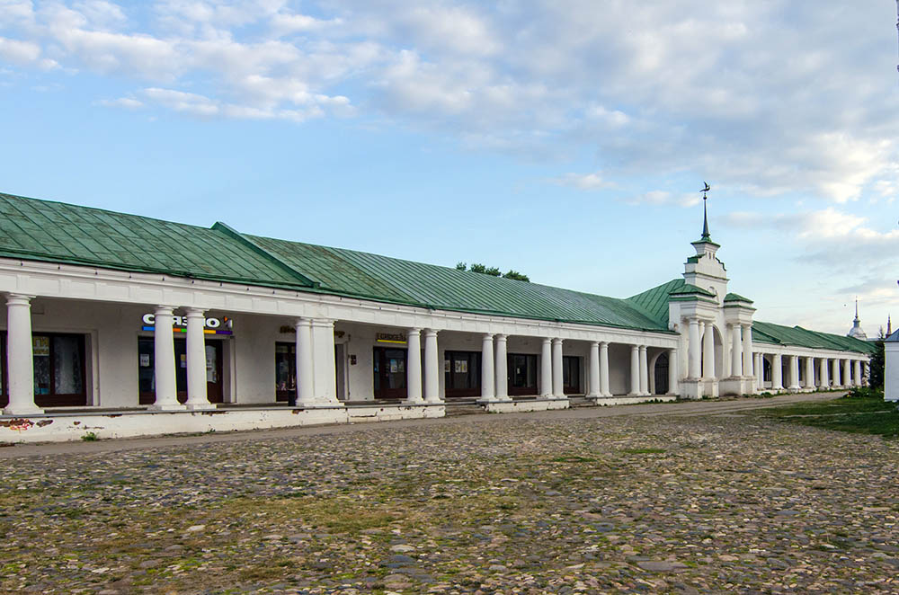 Прогулявшись по Кремлю, вы выйдете на суздальскую Торговую площадь. Рынки располагались на площади с XII века. В 1806–1811 годах тут построили здание Гостиного двора в стиле ампир. Торговые ряды до сих пор остаются местом, где можно купить что угодно: от книг до продуктов. Не забудьте выбрать сувениры на память.