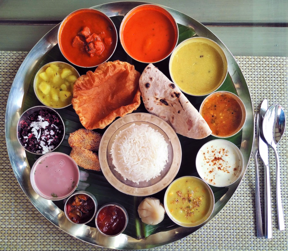 Основу национальной индийской кухни составляют рис, брынза, овощи и много-много ароматных специй. У приезжих популярностью пользуются куриные ножки чикен тандори, очень вкусные, но безумно острые. Обратите внимание на мягкую брынзу панир дилрубу с кешью и сухофруктами, под соусом с добавлением кардамона и белого перца. В жару хорошо отведать суп райту — аналог русской окрошки из простокваши, свежих овощей, мяты, кинзы и специй. Для большой компании подойдёт тхали — блюдо из 6-30 тарелочек с национальными угощениями. Ко всем горячим блюдам вместо хлеба подают лепёшки чапати, роти или наан с разными соусами и начинками.