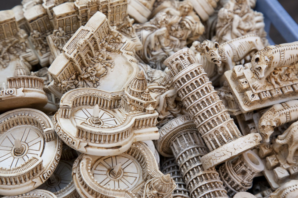 Какие сувениры лучше всего отражают дух Италии? Конечно же, это карнавальные маски, изделия из муранского стекла, кружево ручной работы, фигурки из застывшей лавы, гобелены, бижутерия, изделия из кожи, крошечные гондолы, уменьшенные копии известных итальянских достопримечательностей. Из «вкусненького» рекомендуем приобрести пармскую ветчину, сыры, соусы, пасту, выпечку. Ценителей благородных напитков порадует ароматный лимонный ликёр «Лимончелло», миндальный ликёр «Амаретто», виноградная водка «Граппа».