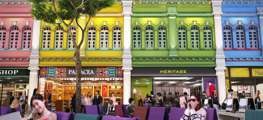 В Зоне Наследия обратите внимание на Peranakan Love Story, короткометражный фильм о жизни Сингапура 1930-х годов. Здесь также расположен развлекательный уголок с Xbox Kinect и ретро-автоматы. В магазине DFS можно попробовать стать барменом и научиться изготавливать индивидуальные коктейли. В TWG Tea Shop проводятся бесплатные уроки по завариванию чая. После — его можно выпить совершенно бесплатно.