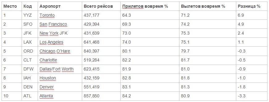 Лидером Северной Америки стал аэропорт Торонто, а вот Атланта совсем не порадовала.