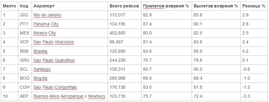 В Южной Америке в лидерах Рио-де-Жанейро лучше всего лететь через него. Панама совсем немного отстал от лидера, а вот хуже всего оборот признали у аэропорта в Буэнос-Айресе.