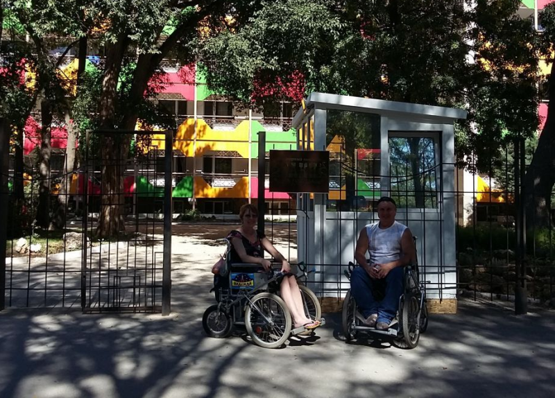 Инвалиды-колясочники у сакского санатория