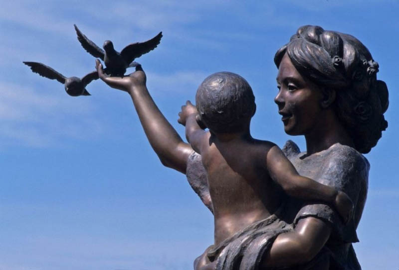 Этот памятник расположен в американском городе Солт-Лейк Сити. В нашей подборке он самый изящный и динамичный. Скульптору удалось очень точно передать в камне игру матери с дочкой. Композиция получилась живой и лёгкой. Порой невольно кажется, что это и не статуя вовсе, а замершие на мгновение живые люди.