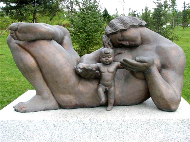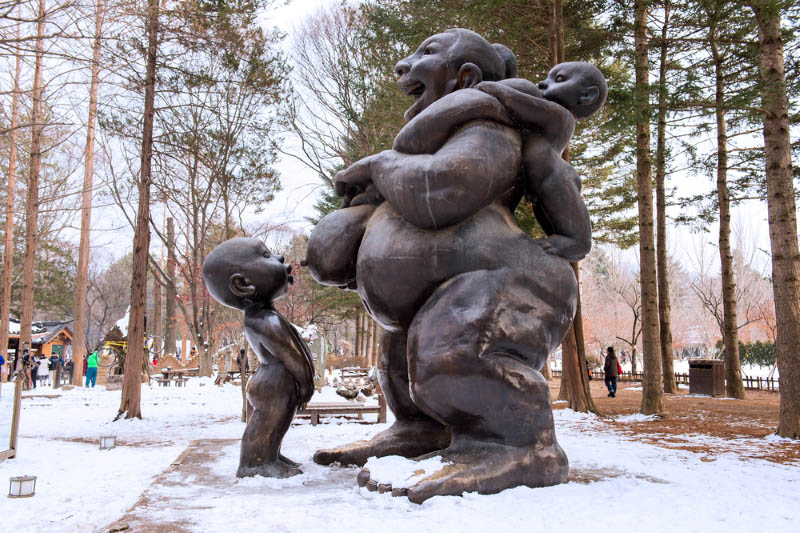 Ещё один интересный памятник кормящей матери расположен на острове Нами. Глядя на него, понимаешь, что один ребёнок — хорошо, а два малыша — ещё лучше, ведь недаром у мамы две груди! Надо сказать, что памятник вызывает неоднозначную реакцию общественности: кто-то хвалит скульптора за отменное чувство юмора, а кто-то брезгливо морщится, глядя на несуразную фигуру женщины-матери и её огромные ступни.