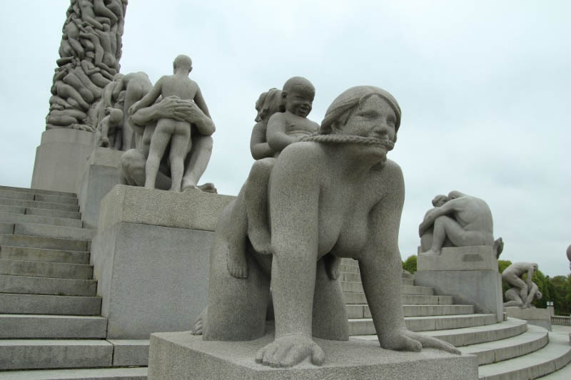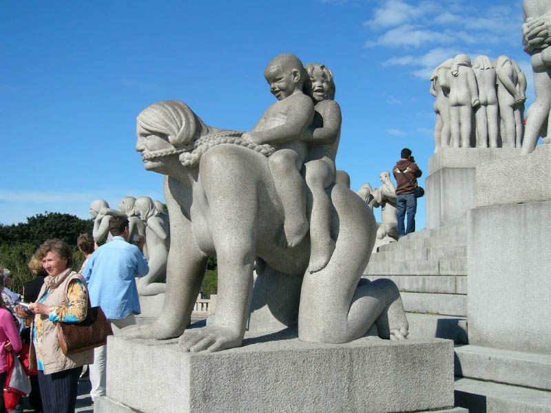 В Осло есть парк скульптур «Фрогнер», в котором собрано множество скульптур, удивительно сочетающих символику, натурализм и эротику. Одна из скульптур парка изображает маму, которая катает на своей спине двух ребятишек. По лицам детей видно, что они жизнерадостны и абсолютно довольны происходящим. А что ещё нужно маме для счастья?