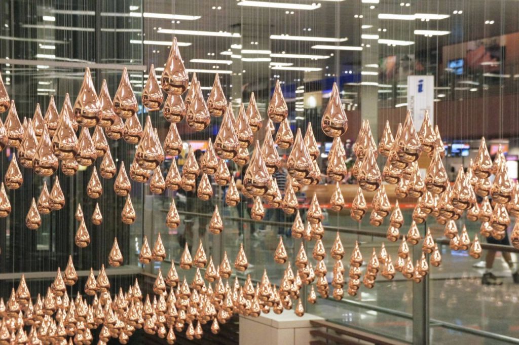 Помещения сингапурского аэропорта украшают множество инсталляций — произведения искусств. Они настолько функциональные, что они помогают расслабиться и отвлечься от усталости, дают ощущение покоя и уюта. Например, «Кинетический дождь», от которого просто невозможно отвести взгляд. Более 1 200 бронзовых капель, перемещаясь, плавно трансформируются в 16 различных фигур и узоров, среди которых самолет, воздушный шар и даже воздушный змей! Ничего подобного нет ни в одном другом аэропорту мира.
