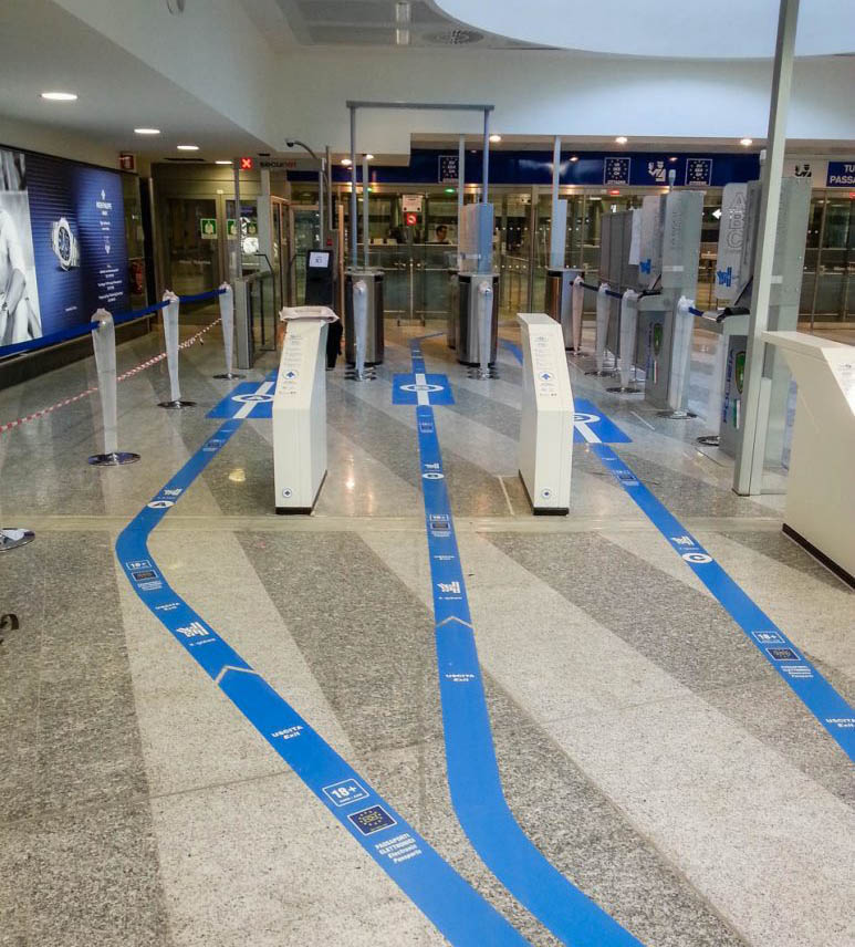 В некоторых аэропортах существует и другая разметка, например, на полу, на стенах и даже на потолке.