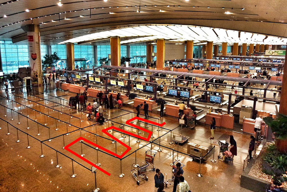 Наверное, все пассажиры, которые проходят регистрацию на рейс, не раз замечали своеобразную очередь «змейкой». Это сделано для удобства путешественников — благодаря специальным ограждениям никто не может сновать из одной очереди в другую и занимать места сразу к нескольким стойкам. Меньше суматохи, споров и стресса. Предполагается, что пассажир выберет один пункт оформления билетов и багажа, займёт место в очереди и спокойно дождётся приглашения работника аэропорта для оформления посадочных документов.