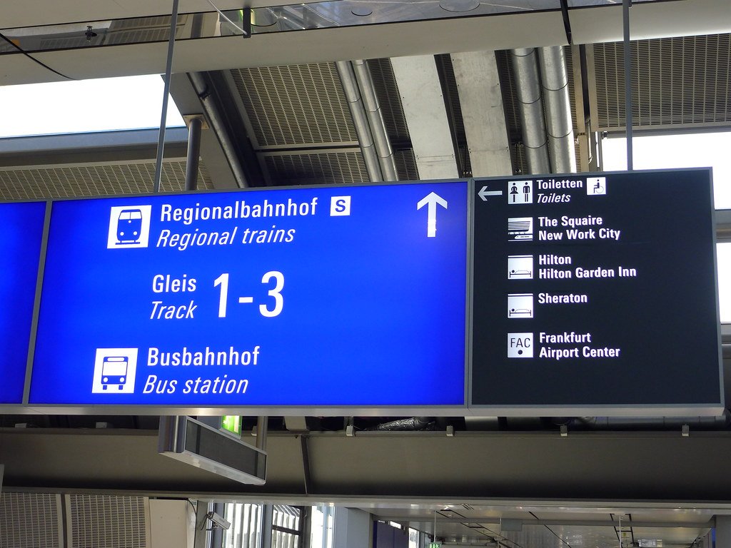 Для ориентирования в здании аэропорта для пассажиров размещены специальные указатели, на которых содержится текстовая и цифровая информация. Надписи дублируются на двух языках — государственном (той страны, куда вы прилетели или откуда улетаете) и английском. Они показывают, где находятся стойки регистрации, зона досмотра, зал ожидания, туалетные комнаты, выходы на посадку и т.п. Размер указателей достаточно большой, чтобы видеть их издалека — поэтому запутаться не получится, даже если вы впервые оказались на аэровокзале.