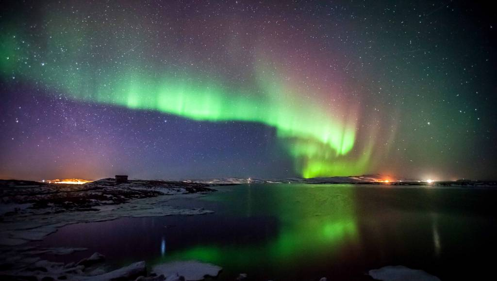 Северное или полярное сияние имеет электрическую природу. Оно происходит из-за заряженных частиц солнечного ветра, которые попадают в магнитное поле Земли. В 100 км над поверхностью планеты эти частицы сталкиваются с молекулами воздуха, углекислого газа и образуют свечение. Самое яркое полярное сияние в России можно наблюдать на Кольском полуострове, в Республике Коми и Красноярском крае. За рубежом оно встречается на Аляске, в Канаде, Исландии и некоторых других странах мира.