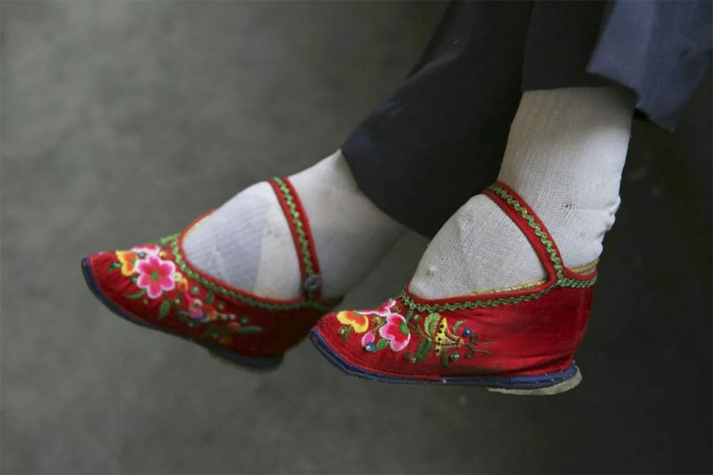 Для маленьких стоп предназначалась специальная обувь ˗ «туфельки-лотосы». Часто у них были каблуки: так стопа казалась ещё меньше, а ходить было ещё сложнее. Туфельки не снимали даже ночью, женщины спали в особой ночной обуви.