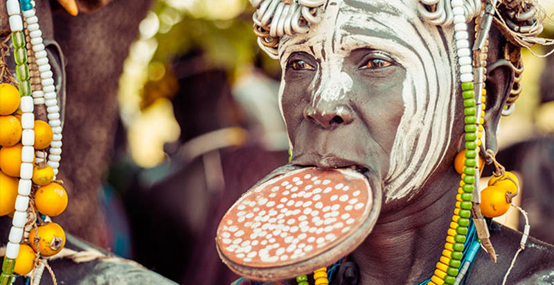 В эфиопском племени Сурма на специальной церемонии 12-летних девочек покрывают шрамами. Способность терпеть боль на этой церемонии считается признаком зрелости и готовности стать матерью.