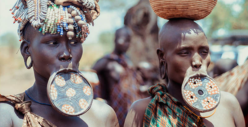 Ещё один странный для нас обычай есть у эфиопского племени Мурси. Там женщинам вставляют в нижнюю губу специальную пластинку под названием дэби. Мурси считают, чем больше пластина в губе у девушки, тем она привлекательнее. Когда девочка становится старше, тарелка увеличивается в размерах. Конечный диаметр такой пластины может достигать 20 сантиметров. Иногда для удобства ношения пластины приходится удалять несколько передних зубов.