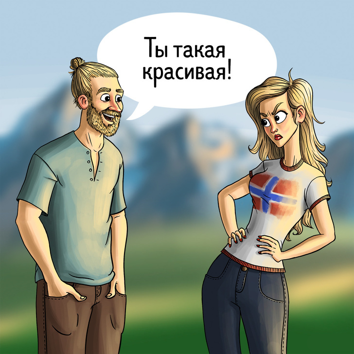 Если вы, путешествуя по Норвегии, сделаете кому-то комплимент, то ваши слова примут за неприкрытую лесть и отреагируют на них со скептицизмом. В стране полуночного солнца похвалить можно только очень близкого человека, и не ради красного словца, а в знак искреннего восхищения его внешней красотой или талантами.