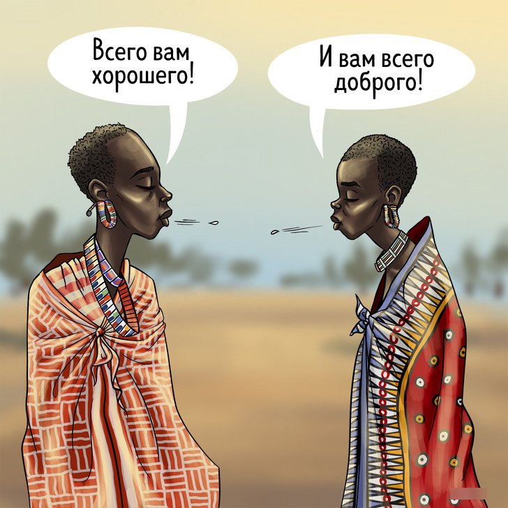 В России плевок в лицо считается жёстким оскорблением и означает глубокое презрение и ненависть к человеку. А вот представители кенийского племени масаи плевками в лицо приветствуют друг друга и выказывают особое радушие и расположение при встрече.