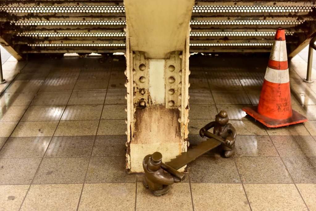 Самые восхитительные и интригующие экспонаты находятся на станции 14th Street / 8th Avenue. Скульптор Том Оттернесс создал Life Underground: серию из более чем сотни причудливых бронзовых фигур, разбросанных по всей станции. Попробуйте найти крокодила, показывающегося из крышки люка. А может быть, вы уже видели пару бронзовых фигур, пытающихся проехать «зайцем»?